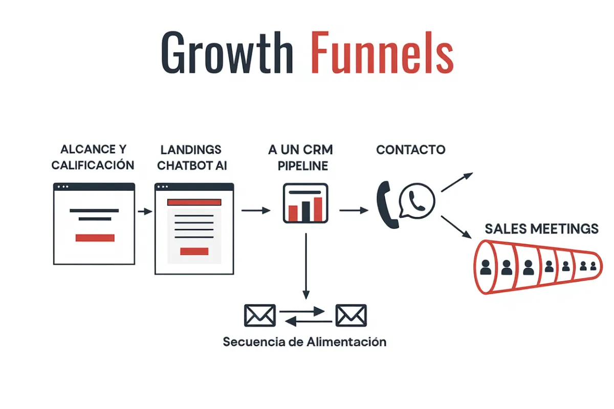 Por eso, construimos Growth Funnels con una arquitectura completa que combina: